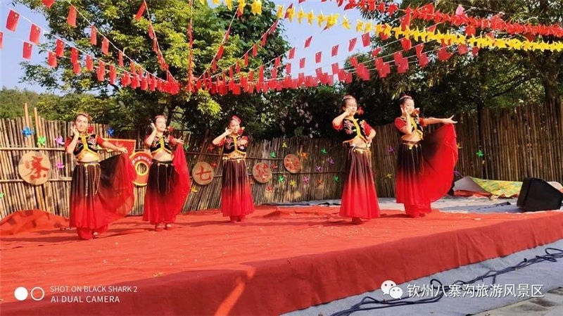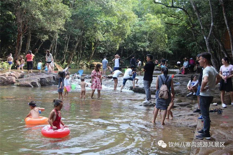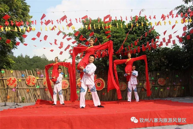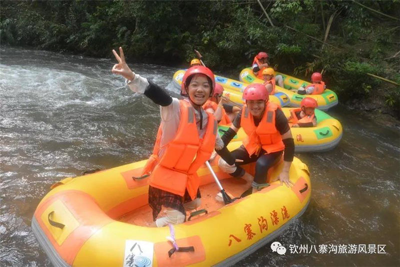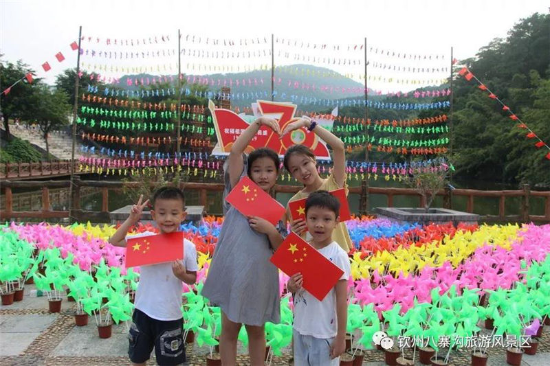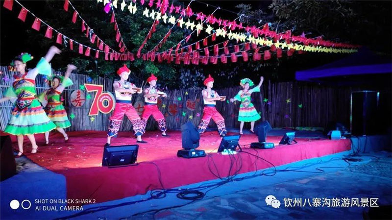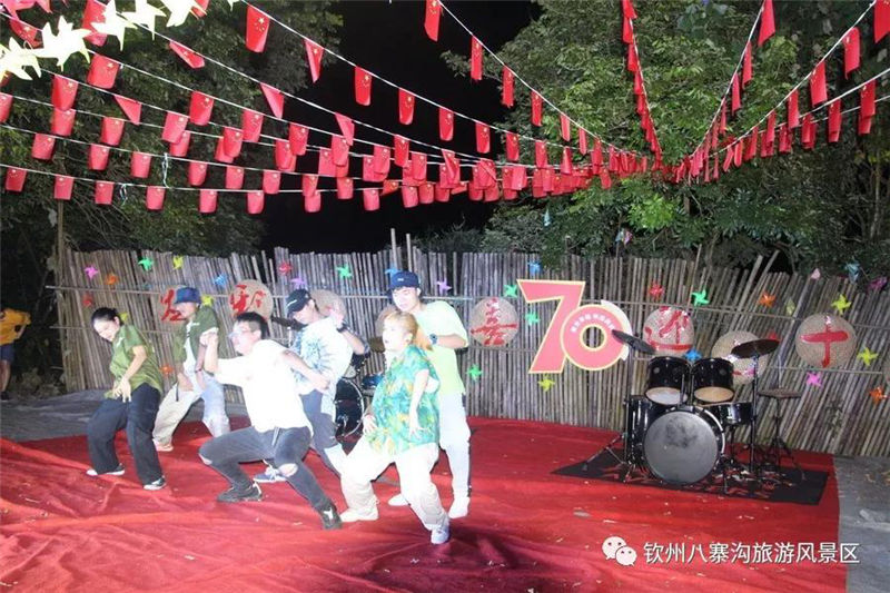 國(guó)慶期間景區(qū)舉辦以“炫彩八寨喜迎70華誕”為主題活動(dòng),受到眾多游客親睞。游客們白天可以觀看精彩歌舞文藝演出,賞彩虹風(fēng)車展,玩真人CS運(yùn)動(dòng),體驗(yàn)欽州第一漂的八寨溝森林漂流,登山泡山泉潑水狂歡,徒步暢游原始森林的美景,呼吸天然氧吧里的新鮮空氣,整個(gè)景區(qū)呈現(xiàn)一片游客如織、喜樂融融的景象。
