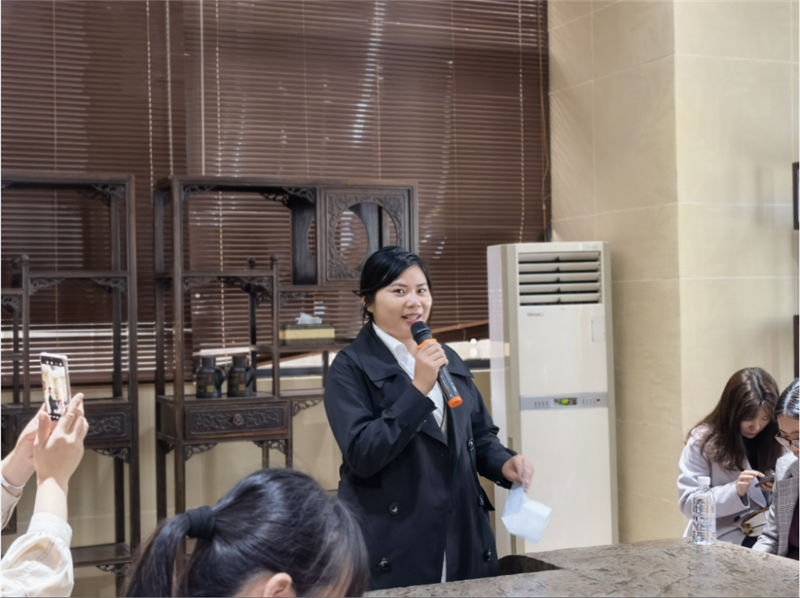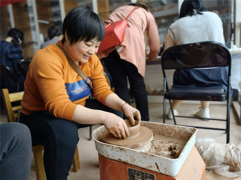 坭興陶文化體驗(yàn)活動(dòng)分為文化知識(shí)講解和制作體驗(yàn)兩部分。文化館負(fù)責(zé)人詳細(xì)講解欽州市泥興陶歷史文化、成就,并帶領(lǐng)女職工們參觀陶器燒制現(xiàn)場(chǎng)和泥興陶成品,介紹泥興陶制作過(guò)程以及煙塵處理等知識(shí)。在陶藝制作體驗(yàn)環(huán)節(jié),女職工們認(rèn)真觀摩陶藝?yán)蠋煹牟僮餮菔纠吆偷窨?,并有模有樣的制作,雖然制作出來(lái)的作品相對(duì)粗糙,但大家如獲至寶。