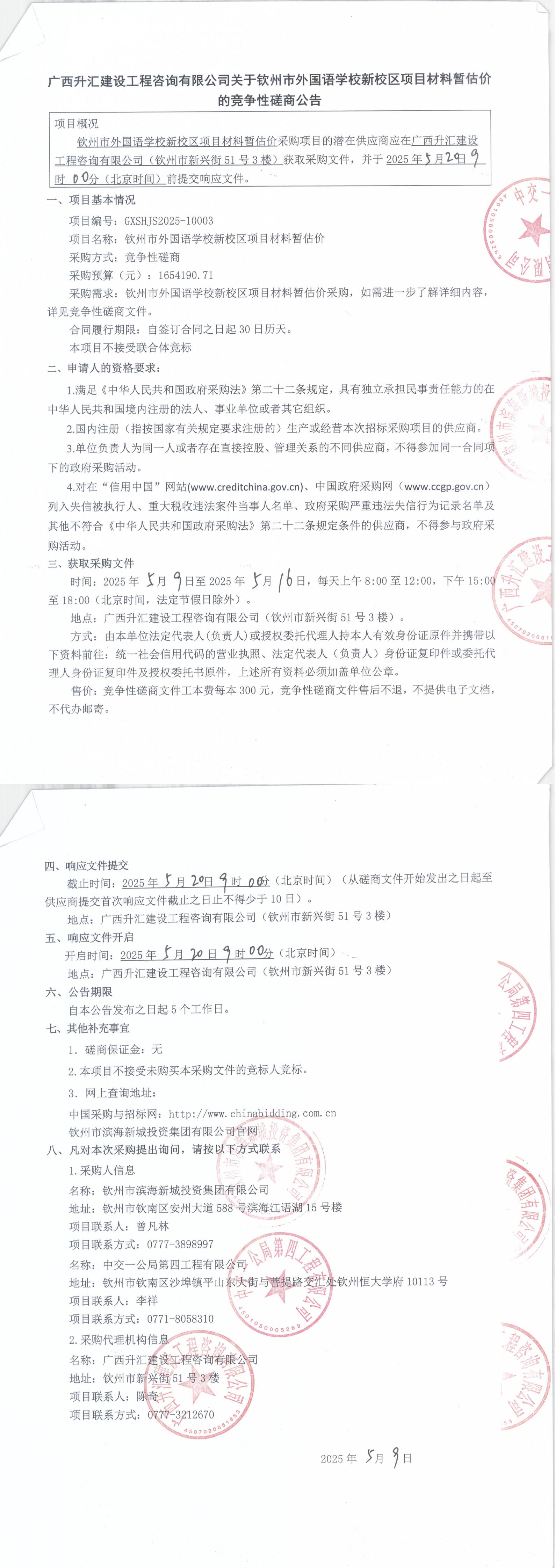關(guān)于欽州市外國(guó)語(yǔ)學(xué)校新校區(qū)項(xiàng)目材料暫估價(jià)的競(jìng)爭(zhēng)性磋商公告