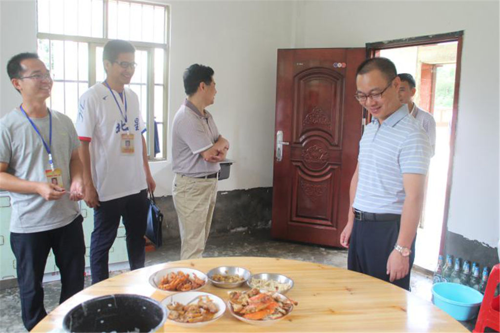 最后,趙文博董事長來到新禾村公共服務(wù)中心看望駐村隊(duì)員。由于先前駐村隊(duì)員駐村條件艱苦,沒有固定的廚房,每天都要面對(duì)“吃飯難”的問題。今年5月份市委組織部下發(fā)《關(guān)于做好扶貧攻堅(jiān)(鄉(xiāng)村振興)工作隊(duì)員駐村安排工作的通知》,要求駐村隊(duì)員吃住在村、全脫產(chǎn)工作在村作為一條鐵的紀(jì)律。為此,新禾村的三個(gè)幫扶單位積極研究對(duì)策并推動(dòng)落實(shí),集團(tuán)公司大力予以資金支持用于新禾村公共服務(wù)中心廚房的建設(shè)。歷經(jīng)一個(gè)多月的建設(shè),村委廚房已建成并投入使用。趙文博董事長在第一書記的引導(dǎo)下來到廚房參觀,看到廚具、餐具、餐桌、凳子一應(yīng)俱全,駐村隊(duì)員們終于解決了吃飯難問題時(shí),趙董事長松了一口氣,他表示廚房的建成,不僅解決了駐村隊(duì)員做飯難、吃飯難的問題,同時(shí)也為駐村隊(duì)員解決了后顧之憂,讓工作隊(duì)員能安心駐村,爭(zhēng)取提前完成脫貧攻堅(jiān)任務(wù)打下堅(jiān)實(shí)的物質(zhì)基礎(chǔ)。