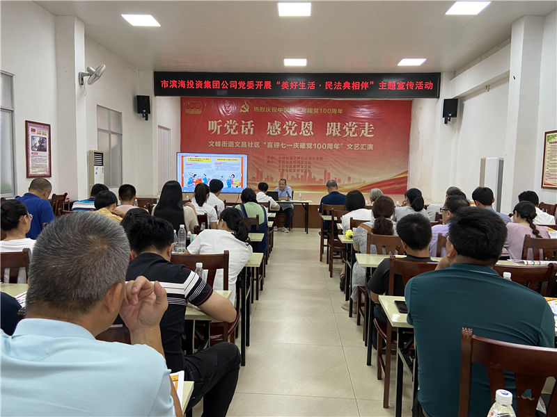 2021年6月28日,集團(tuán)公司黨委組織黨員干部到文昌社區(qū)開展“美好生活·民法典相伴”主題宣傳活動(dòng)。并在文昌社區(qū)新時(shí)代文明實(shí)踐大課堂舉辦了一場(chǎng)《中華人民共和國(guó)民法典》宣傳宣講。
