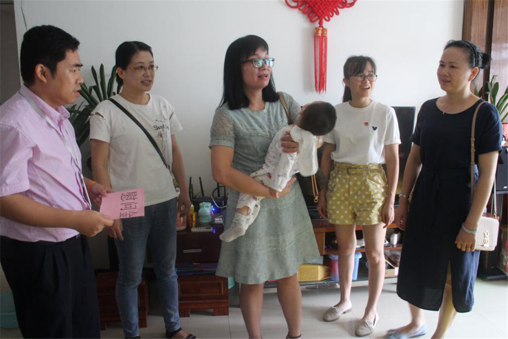 (圖為慰問(wèn)小組來(lái)到職工家中看望患病兒童)
