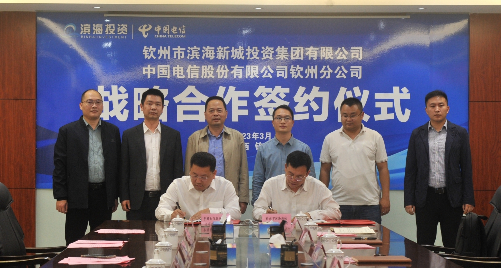 為深入貫徹習(xí)近平新時(shí)代中國(guó)特色社會(huì)主義思想和黨的二十大精神、落實(shí)欽州市委市政府各項(xiàng)決策部署、加快推進(jìn)“數(shù)字欽州”建設(shè),以實(shí)際行動(dòng)踐行欽州市“四輪驅(qū)動(dòng)”戰(zhàn)略,3月16日下午,我集團(tuán)公司與中國(guó)電信欽州分公司簽署《戰(zhàn)略合作協(xié)議》,將在5G、物聯(lián)網(wǎng)、云計(jì)算、大數(shù)據(jù)、網(wǎng)絡(luò)服務(wù)支撐等新技術(shù)應(yīng)用開展深度合作,就今后共同推進(jìn)城市大數(shù)據(jù)運(yùn)營(yíng)項(xiàng)目建設(shè)工作達(dá)成共識(shí)。市濱海投資集團(tuán)公司黨委書記、董事長(zhǎng)盧長(zhǎng)任,中國(guó)電信欽州分公司黨委書記、總經(jīng)理羅東分別致辭并簽約。