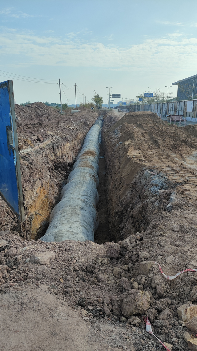 菩提路項目:該項目凌云街至平山東大街段已于11月1日正式開工,施工單位已進場完成全段的清表工作及不良土的清除,已完成洗車平臺及工地大門等施工臨時設施建設,現開挖約300米污水管道、300米雨水管道及完成雨污水管各250米回填砂。