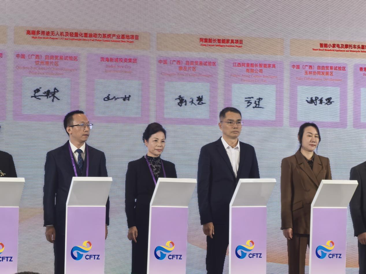 2025年11月5日,第八屆中國國際進(jìn)口博覽會(huì)期間,由自治區(qū)商務(wù)廳組織在上海舉辦了"投資廣西 桂有自貿(mào)"——中國(廣西)自貿(mào)試驗(yàn)區(qū)專場(chǎng)推介會(huì)。欽州市濱海新城投資集團(tuán)有限公司與中馬欽州產(chǎn)業(yè)園區(qū)管委就落地“高端多用途無人機(jī)及輕量化重油動(dòng)力系統(tǒng)產(chǎn)業(yè)基地項(xiàng)目”達(dá)成投資意向,并完成項(xiàng)目簽約。集團(tuán)公司副總經(jīng)理劉一材出席了此次簽約活動(dòng)。