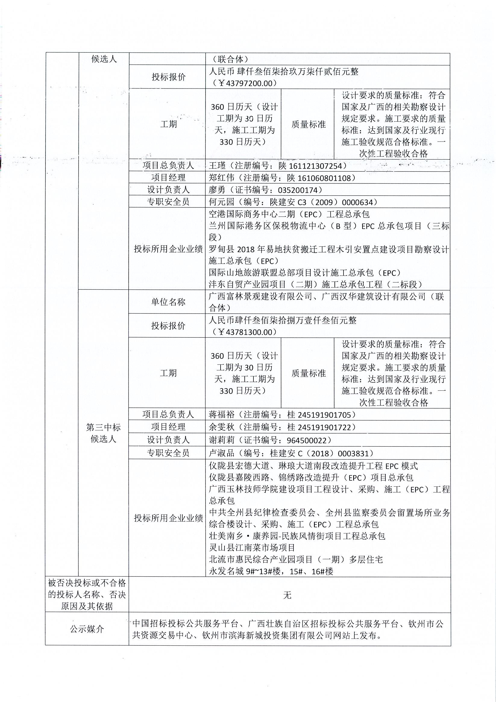 欽州市中山路、占鰲巷旅游開發(fā)項目(一期)道路、外立面、景觀及試點(diǎn)工程設(shè)計-采購-施工(EPC)工程總承包中標(biāo)候選人公示