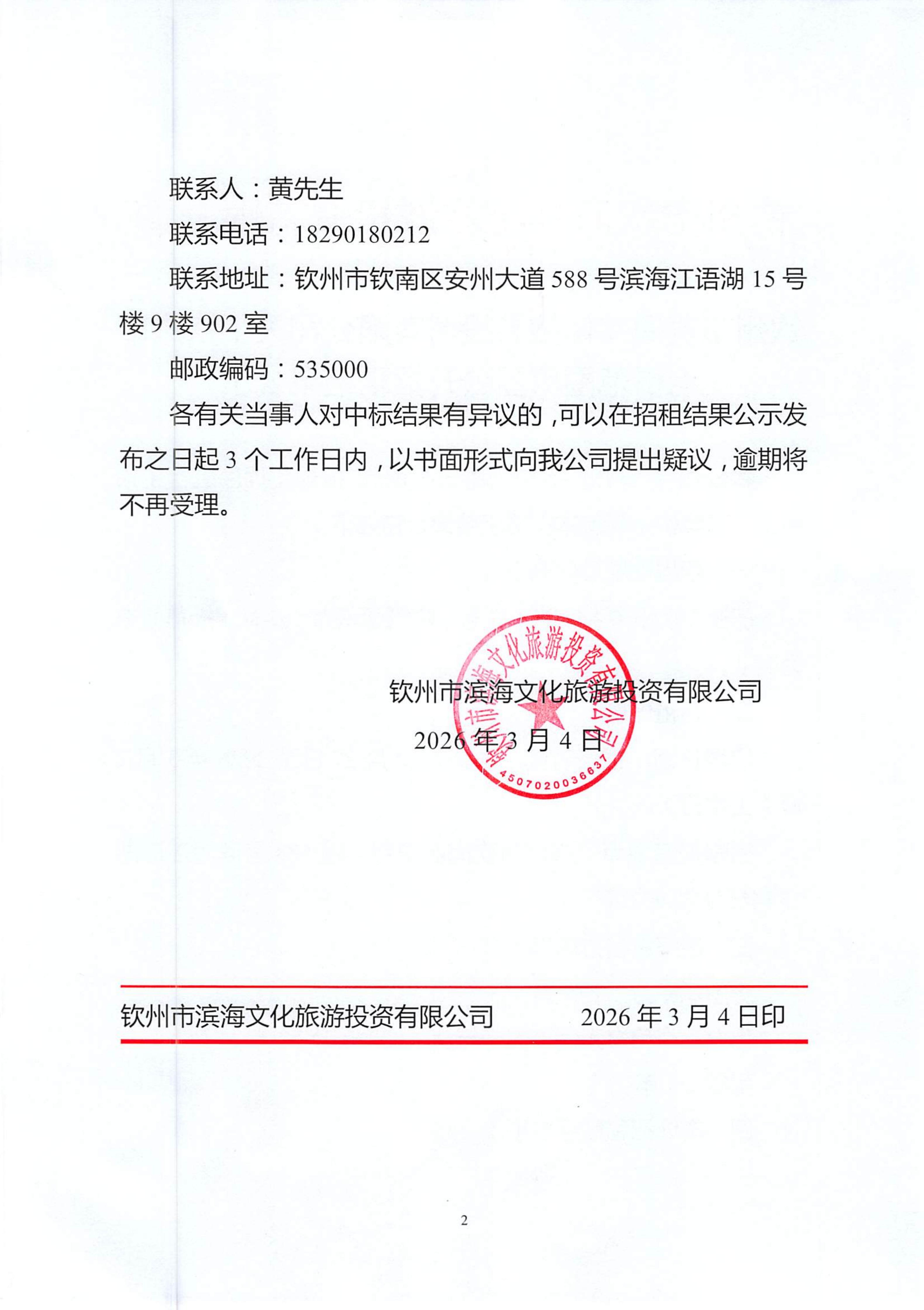 欽州市濱海文化旅游投資有限公司關(guān)于欽州市老街范圍房屋公開招租結(jié)果公示