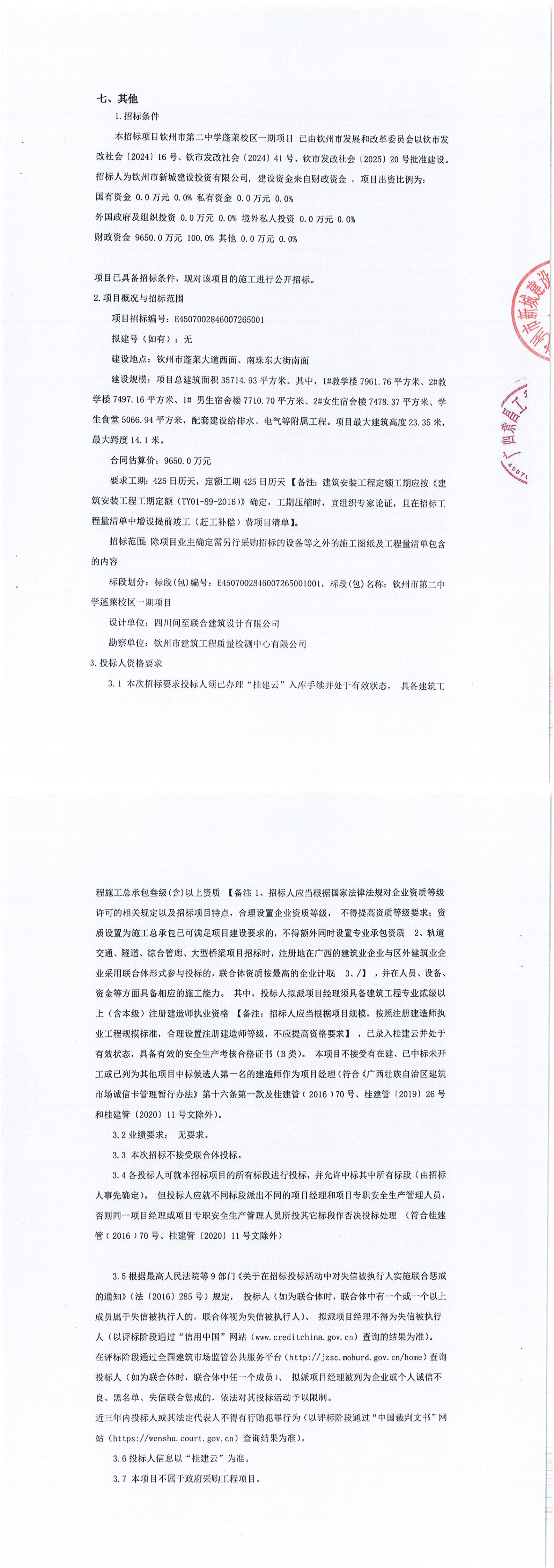 欽州市第二中學蓬萊校區(qū)一期項目(項目招標編號:E4507002846007265001)更正公告(一)