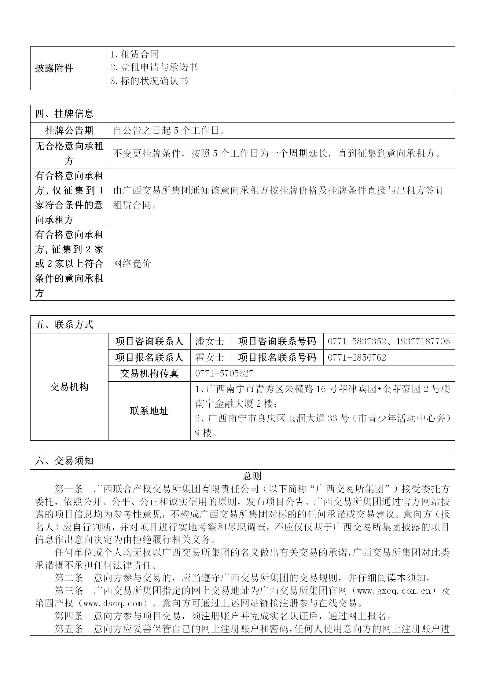 欽州市安惠一園幼兒園資產(chǎn)出租項目公告內(nèi)容(公共資源)